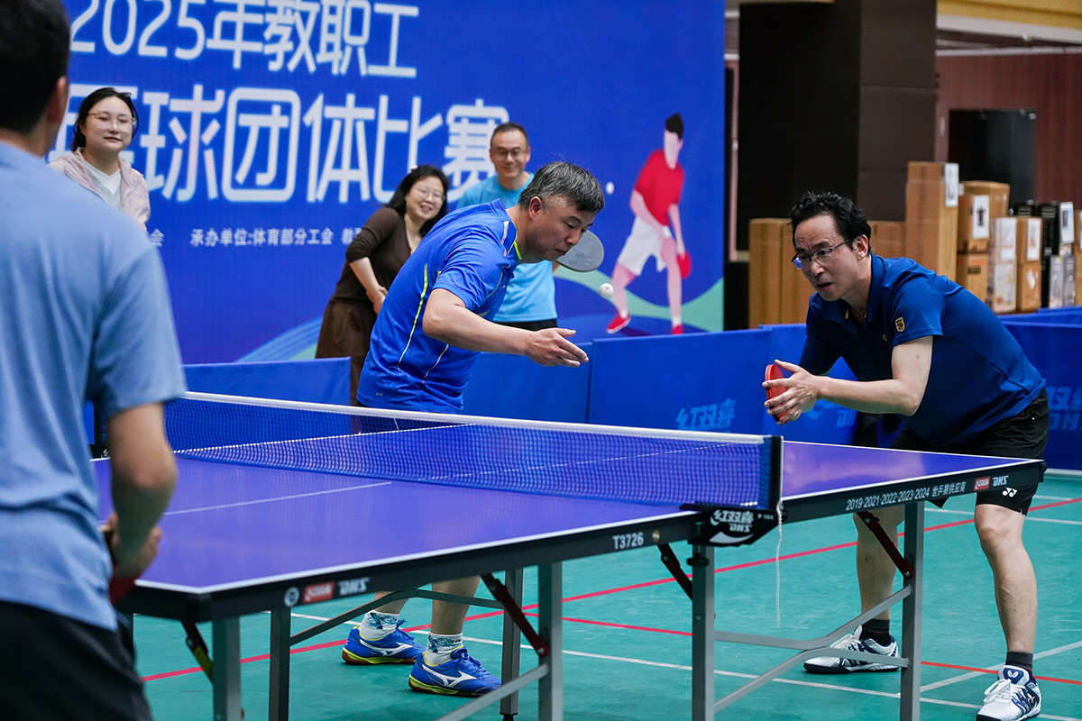 大赛吸引了来自全校二级工会组成的18支代表队的积极参与,充分展现了教职工们团结拼搏、奋勇争先的精神风貌。各代表队经过抽签分组,展开了激烈的小组循环赛。参赛教职工们以饱满的热情投入到角逐中,推挡扣杀间尽显精湛球技,展现了高超的竞技水平。决赛阶段,各队精心排兵布阵,斗智斗勇。选手们时而稳守反击,时而犀利进攻,精彩的比赛场面赢得了现场观众的阵阵喝彩。紧张激烈的赛事氛围与教职工们的蓬勃朝气交相辉映,为比赛增添了更多的精彩瞬间。