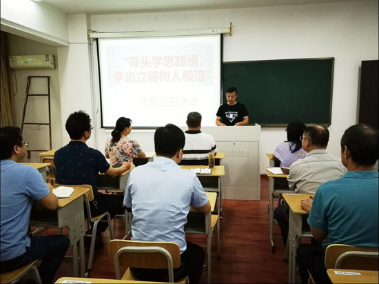 党总支书记首先强调了开展此次主题教育活动的目的和意义,号召全体党员教师自觉贯彻执行习近平总书记关于教育事业发展、关于制止餐饮浪费行为等重要讲话和指示精神,积极践行“四有”好老师和“四有”新人要求,带头践行“光盘行动”,反对浪费,争做立德树人模范。